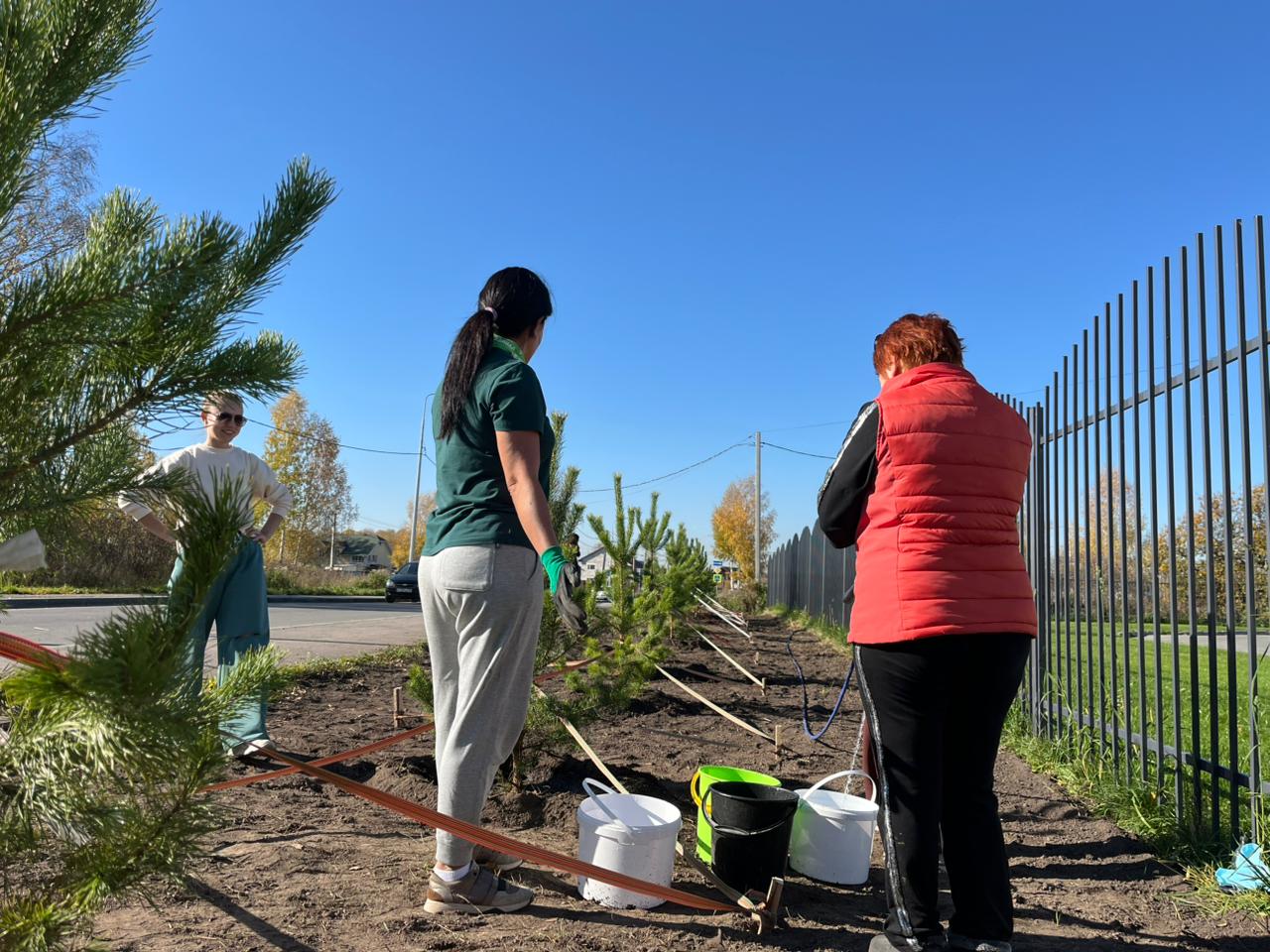 Сотрудники оконного завода «Динал» высадили аллею из 30ти молодых сосен перед амбулаторией в